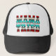 Letra o estilo em tons de vermelho, branco e azul-aqua que diz "MAMA TRIED" neste chapéu divertido.
