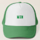 Texto branco e verde colorido MEN com o chapéu de caminhoneiro de homem bonito, você pode editar ou alterar o texto de HOMENS. Os chapéus de caminhoneiro apresentam normalmente um fecho de plástico no verso, permitindo um dimensionamento ajustável. Os panos de malha na parte traseira do chapéu fornecem ventilação, fazer adequado para atividades ao ar livre, e o estilo foi adotado para sua aparência casual e de repouso. Esses chapéus geralmente apresentam vários designs, logotipos, slogans ou gráficos no painel frontal de espuma. Os chapéus de caminhoneiros foram vestidos por pessoas de vários setores da vida, incluindo caminhoneiros, fazendeiros e entusiastas externos. Eles também ganharam popularidade na moda convencional e foram esportistas por celebridades e tendências. Enquanto a sua popularidade passou por períodos de ressurgência e declínio, os chapéus de caminhoneiros continuam a ser um acessório reconhecível e icônico na cultura popular. O visor, ou a conta, na frente do boné está curvo, semelhante ao design dos bonés tradicionais de beisebol. A curvatura ajuda a proteger os olhos do sol e acrescenta ao portão do boné e à aparência clássica. Os chapéus de caminhoneiros passaram por várias fases de popularidade ao longo dos anos, desde suas origens utilitárias até se tornarem icônicos acessórios de moda. Eles continuam a ser um estilo reconhecível de roupas de cabeça que continua a ser apreciado pelo seu conforto, capacidade de respiração e design distinto.