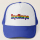 Trucker Hat com o sinal de texto " Indiana" em cores da bandeira do orgulho arco-íris LGBT (lésbica, gay, bissexual e pessoas transexuais), amor ao arco-íris, amor ao gay, orgulho estatal americano lgbtqiap+ design