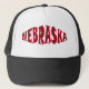 Bloco estilizado e texto em negrito diz "Nebraska" em vermelho escarlate neste chapéu. Mostre seu orgulho em Nebraska!