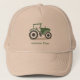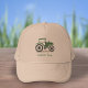 Um boné com uma ilustração em estilo cartoon de um trator de fazenda verde e cinza e texto personalizável por baixo! Uma ideia de presente de excelente para um agricultor ou um camponês!