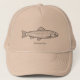 Um boné com uma ilustração de truta na arte de linha e mensagem de texto abaixo para um presente de aniversário para um pescador, um guia de pesca, um amante de peixes, etc.
