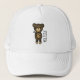 Um camionista personalizado com um nome com uma simples ilustração de um ursinho marrom de desenho animado segurando uma margarida amarela.