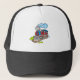 Boné Vermelho e trem azul
