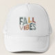 Fall Vibes Trucker Hat com Fall Vibes em cores de queda sem som e script em caracteres antigos e angustiados. Cores adicionais disponíveis.