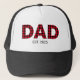 Um PAI de letra de bloqueio moderno com uma xadrez vermelha e negra de búfalos. Há um texto de acompanhamento para acrescentar o ano em que ele se tornou pai. As outras letras do alfabeto estão ocultas se você quiser personalizar este design.