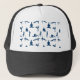 Imagens de ioga asana em branco e azul. Chapéus de caminhoneiro personalizados para pessoas que amam ioga. Ideia do presente.