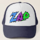 Boné ZAP o chapéu azul, o roxo e o verde