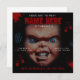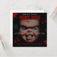 Boneca Chucky Azul Vermelho Convite Sangrento. Faça uma declaração com este convite de festa de aniversário personalizado e temático. Você pode facilmente enviá-lo por mensagem ou imprimir e enviar para os seus convidados.