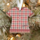 Vestido de xadrez, aparado com botões de flocos de neve e rendas, mostra o monograma e o nome do seu ente querido. Na parte de trás está uma pequena "tatuagem" cardíaca, cor-de-rosa pincelado, com a menção "Natal 20xx". Adicione seu próprio nome e data seguindo o link "Personalizar este modelo".