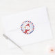Embale seu envio ou presente de Natal com um belo selo redondo que apresenta as bordas de um envelope de correio aéreo em azul escuro e vermelho. Ele tem uma ilustração de um boneco de neve com um cachecol e um chapéu de inverno. O texto é personalizável e lê-se ESCRITÓRIO DE CORREIOS DO POLO NORTE - ENTREGA ESPECIAL PARA ...