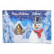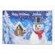 Uma ilustração maravilhosa do Winterland com um boneco de neve e uma cabana confortável.