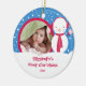 Os enfeites de natal bonitos da foto que caracterizam um grupo adorável do boneco de neve em um fundo enchido neve, apenas adicionam SUA FOTO! Aperfeiçoe para o primeiro Natal & o segundo Natal. Um presente do Natal da maravilha sure a ser estimado por muitos próximos anos. gráficos do ©zenware