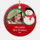 Os enfeites de natal bonitos da foto que caracterizam um boneco de neve cor-de-rosa adorável ajustado em um fundo cor-de-rosa & branco das bolinhas, apenas adicionam SUA FOTO! Aperfeiçoe para o primeiro Natal & o segundo Natal. Um presente do Natal da maravilha sure a ser estimado por muitos próximos anos.
