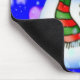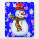 Boneco de neve bonito, estrelas e corações de flutuação e fundo nevando azul. Mousepad agradável tão perfeito como o presente do Natal!