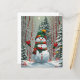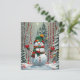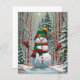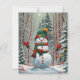 Bonhomme de neige dans la forêt, dans les tons rouge et vert, parfait pour les fêtes de fin d'année