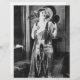 Excelente antiga fotografia de uma mulher bonita num vestido ultrajante, ao estilo do 1920, a olhar ao espelho. Fantástico roupas de estilo menstrual com chapéu e penas. Fotografia da safra tirada em 1920. Fotógrafo desconhecido.