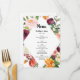 menu casamento outono com flores bonitas e texto alterável, impresso em fundo branco.