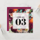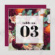 Um design de mesa de casamento elegante e rico com uma mistura de lindas flores de verão em fundo magenta e tipografia preta personalizável em um fundo transparente branco e de fundo dourado. A linguagem das flores, conhecida como floriografia, atribui significados diferentes a vários tipos e cores das flores. Por exemplo, rosas representam amor; begônias simbolizam harmonia; dahlias significam compromisso; ranúnculo representa charme; e snapdragons significam graça.