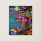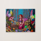 Um quebra-cabeça perfeito para inspirar qualquer artista, seja ao lado da praia ou não. Esta bela imagem representa uma sereia à procura de inspiração no seu estúdio de arte/caverna. Usei principalmente marcadores de cópia e lápis coloridos para colorir a peça original, mas para os cristais mais próximos à entrada da caverna, usei pastéis de giz.