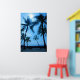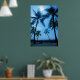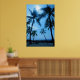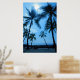 Uma imagem impressionante de belas palmeiras havaianas balançando em frente aos céus tropicais azuis e ao oceano.