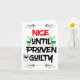 Nosso cartão de Natal "Nice Até que Proven Guilty" é perfeito para todos na sua lista. Este cartão vem com vários tamanhos diferentes, com ou sem envelopes e, este ano, o Zazzle irá até tratar dos seus envelopes. Não fica mais fácil enviar nossos Cartões de natal e cartões de Natal!