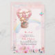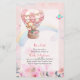 Balão de ar quente e selva bonito com aquarela e animais aparecem neste convite para chás de fraldas modernos para raparigas.