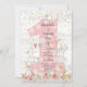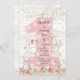 Um belo coelhinho, um grande aniversário, meninas, Convite com um grande número rosa, com flores colocadas sobre um fundo de madeira branca.