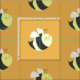 O tecido que caracteriza um bonito, feliz e sorrindo bumble a abelha em um fundo alaranjado.