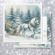 Um bonito cavalo branco caminhando com um trenó festivo em um dia de inverno com árvores derramadas de neve e uma bonito cena de sereno. Um doce cartão de férias personalizado para lhe dar uma vibração calorosa e acolhedora.