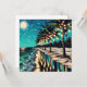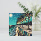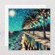 Arte bonito e romântica costeira de Ai, que representa uma fila de palmeiras com luzes brancas iluminadas sobre elas. Uma bonito reflexão sobre a praia e as ondas arenosas.