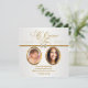 Linda foto de bebê e o convite de Quinceanera para fotos e ouro. Esta doce foto de ouro Quinceanera apresenta uma fita de ouro elegante e arco com quadros de ouro dourados para duas fotos da sua linda filha - uma como bebê e a outra como ela é agora. Personalize este convite elegante de marfim e foto dourada Quinceanera adicionando suas fotos, detalhes do evento, estilo de fonte, tamanho de fonte e cor e texto.
