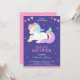 Incêndios aos seus convidados com este chá de fraldas bonito, convidando com um unicórnio colorido com elementos vibrantes contra um fundo azul roxo. Basta adicionar os detalhes do seu evento neste modelo fácil de usar para torná-lo um convite de tipo único. Sacudir a placa por cima para revelar um padrão de listras cor-de-rosa e brancas na parte traseira da placa.