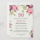 Procurando um convite encantador para sua próxima festa de 90? Olhe só o nosso bonito convite floral! Com um design adorável com flores cor-de-rosa, roxas e cremes delicadas em um fundo verde sábio, este convite personalizável é certamente o tom perfeito para sua celebração.