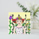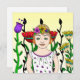 Bonito menina vermelha com fundo floral brilhante e colorido.