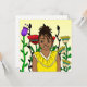 Bonito menina de cor com fundo floral brilhante e colorido.