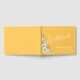 O design do guestbook de casamento personalizado bonito apresenta cores brancas margaridas canto sobre fundo amarelo daffodil com blocos de texto personalizáveis brancos em fontes modernas