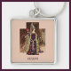Excelente chaveiro de decorado com uma adorável senhora medieval. Paleta de cores bege e roxo. Adicione seu nome para personalizar.