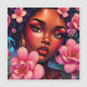 Legal arte ai representando uma bonito mulher afro-americana com flores cor-de-rosa no cabelo. Bonito arte digital hiper realista.