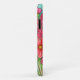 Uma pintura floral estilizada e vibrante do cosmos em muitos tons de rosa num vaso de vidro sobre um fundo turquesa numa capas de iphone da popular Lisa Lorenz