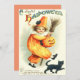 Dê um brinde ao seu truque neste Halloween. Este impressão retrata um carregando de palhaço bonito, um sorriso de lanterna, uma vassoura na mão e um gato preto nos pés.