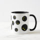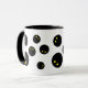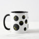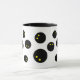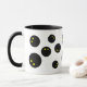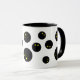Um presente de caneca de impressão de bola de squash engraçado para o jogador. Bolas pretas de squash com ponto amarelo duplo. Personalize com seu próprio texto opcionalmente. Design para amante de squash, treinador de esporte, colega, colega, crianças, treinador, amigo, pai, marido, esposa, etc. Legal xícara com alça preta e dentro.
