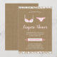 Esta chá de panela de lingerie bonito apresenta um belo texto caligrafia, um sutiã e calcinha cor-de-rosa e branco, um fundo de papel kraft, e uma borda de renda branca.