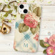 Design com rosas rosa, folhagem verde-sábio e listras de cor azul-lacrimogênea, muito bonito, no estilo rústico/camuflagem/camuflagem, em fundo amarelo pastel/buff. Inclui o campo de texto do seu nome, inicial ou monograma.