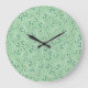 Um bonito Relógio de Parede Redonda, com um padrão de Shamrocks Verdes Escuros esboçados em Branco, sobre um fundo Verde Claro. Parte da coleção Posh & Painterly 'Shamrocks', este padrão pode ser ajustado para ajustado qualquer Relógio de Parede.