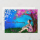 A mão desenhou uma senhora bonito sentada debaixo de uma árvore mágica e colorida.