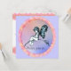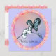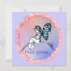 Uma ilustração de fada de livros de histórias antigos foi usada neste doce design. A pequena fada, em azul impressão de livro, com asas de borboleta, está sentada num galho fino. Uma borda floral rosa circunda a fada em frente a um fundo azul claro e pastel. Um design maravilhoso para uma festa de aniversário, chá de fraldas ou um anúncio de nascimento. Use o recurso de personalização fácil de usar do Zazzle para personalizar. Os envelopes correspondentes também estão disponíveis.