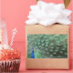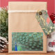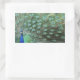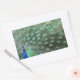 Um pavão colorido com penas de cauda enlouquecidas enfeita esses paus.