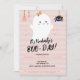 Um fantasma bonitinho e amigo aranha com o ditado "Boo dia Feliz" Um convite divertido para o Dia das Bruxas ou aniversários de outubro.