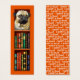 Eu queria ler! está no verso deste livro enquanto um doce Pug lhe pega a cabeça através de uma estante com livros na frente.